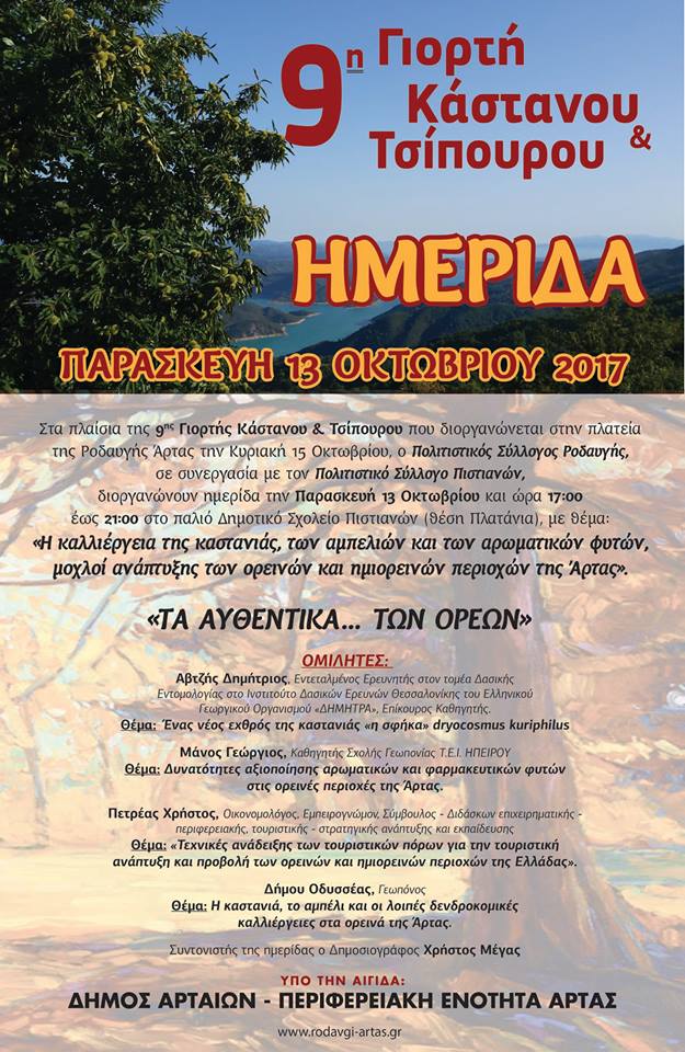 Η εκδήλωση ήταν υπό την αιγίδα του Δήμου Αρταίων και έγινε στα πλαίσια της 9ης Γιορτής Τσίπουρου και Κάστανου, που θα πραγματοποιηθεί την Κυριακή στη Ροδαυγή.