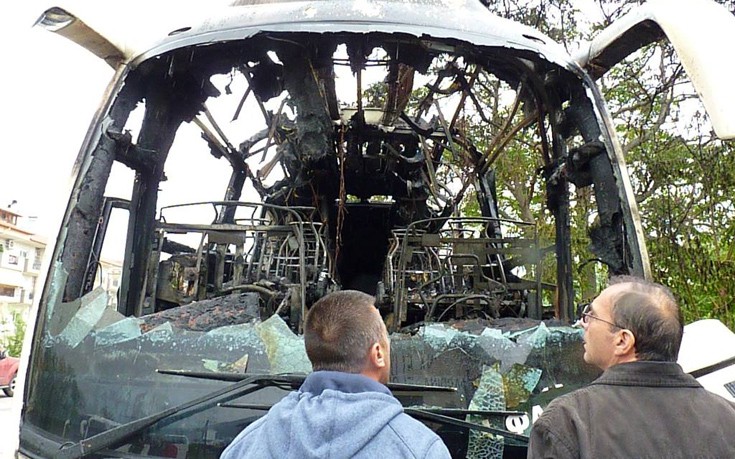 Στις 5 τα ξημερώματα, από άγνωστη μέχρι στιγμής αιτία, ξέσπασε φωτιά που κατέστρεψε το εσωτερικό του λεωφορείου και μεγάλος μέρος της οροφής και του μπροστινού χώρου.