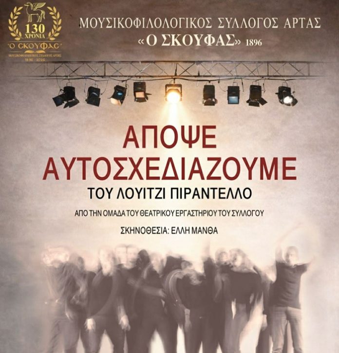 Η Ομάδα του Θεατρικού Εργαστηρίου του Μ/Φ Συλλόγου Άρτας «Ο Σκουφάς» παρουσιάζει το έργο «Απόψε αυτοσχεδιάζουμε» του Λουίτζι Πιραντέλλο.