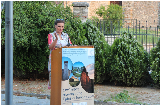 Η εισήγηση της Δρ. Δωροθέας Παπαθανασίου-Zuhrt, στέλεχος του Εργαστηρίου αφορούσε τον «ρόλο του ψηφιακού πολιτισμού στην τουριστική ανάπτυξη» με έμφαση στην σημαντικότητα και αναγκαιότητα του πολιτιστικού αφηγήματος ιδιαίτερα για τη νέα γενιά προκειμένου να υπάρξει σύνδεση με τον πολιτιστικό πλούτο και ιστορία. Η Δρ. Δωροθέα Παπαθανασίου-Zuhrt αναφέρθηκε στην ανάγκη να δοθεί μεγαλύτερη βαρύτητα και οικονομική στήριξη στον πολιτισμό καθώς αποτελεί μοχλό οικονομικής και κοινωνικής ανάπτυξης.