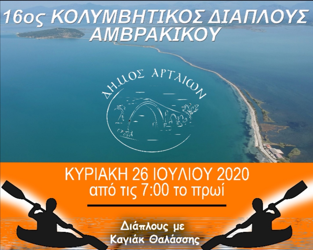 Τρία σημαντικά αθλητικά γεγονότα, με το επίκεντρο στην Κορωνησία διοργανώνονται από τον Δήμο Αρταίων, αυτή την Κυριακή 26 Ιουλίου 2020. Ο λόγος για τον 16ο Κολυμβητικό Διάπλου Αμβρακικού, το 3ο Koronisia Sprint Triathlon και τον Διάπλου με καγιάκ θαλάσσης.