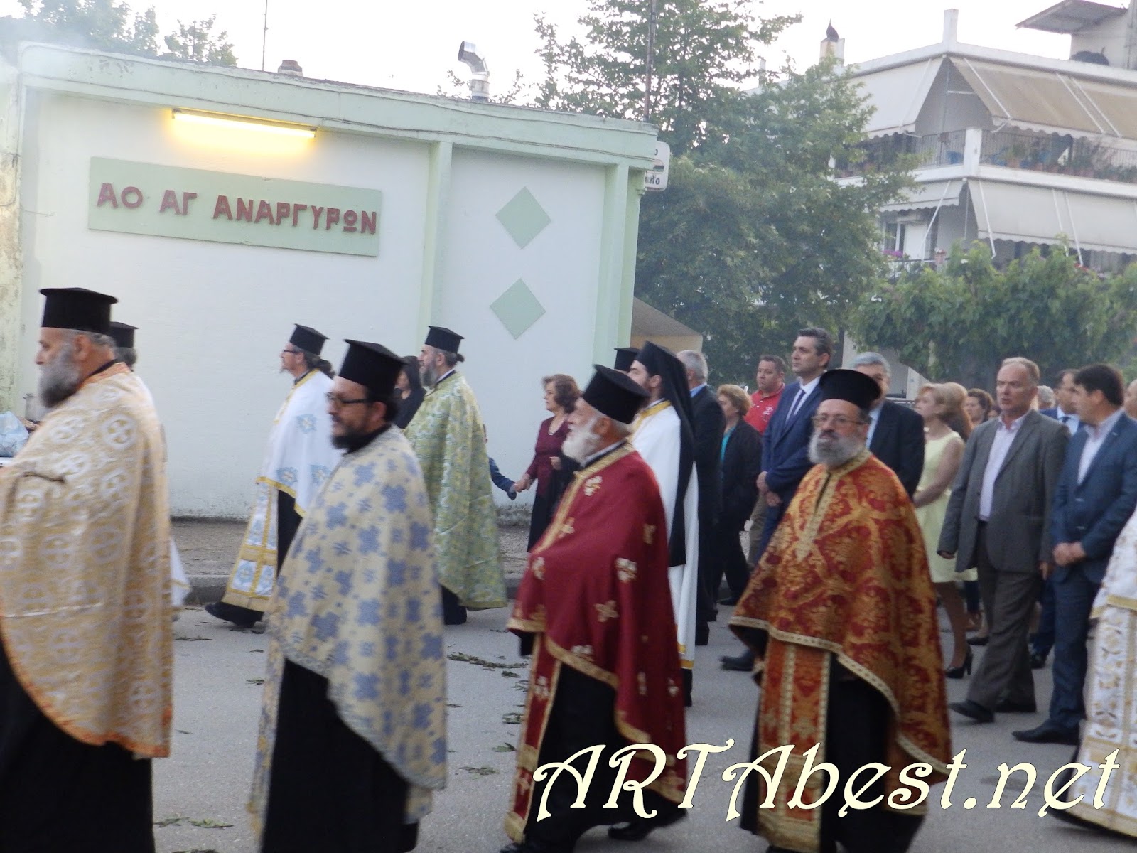 Με  ιδιαίτερη λαμπρότητα και μεγαλοπρέπεια  χθες το απόγευμα έγινε η λιτάνευση της εικόνας του Αγίου Θεράποντα στους Αγίους Αναργύρους Άρτας, με την συμμετοχή πολλών Ιερέων, εκπροσώπων τοπικών φορέων,της φιλαρμονικής μουσικής και πλήθους κόσμου.