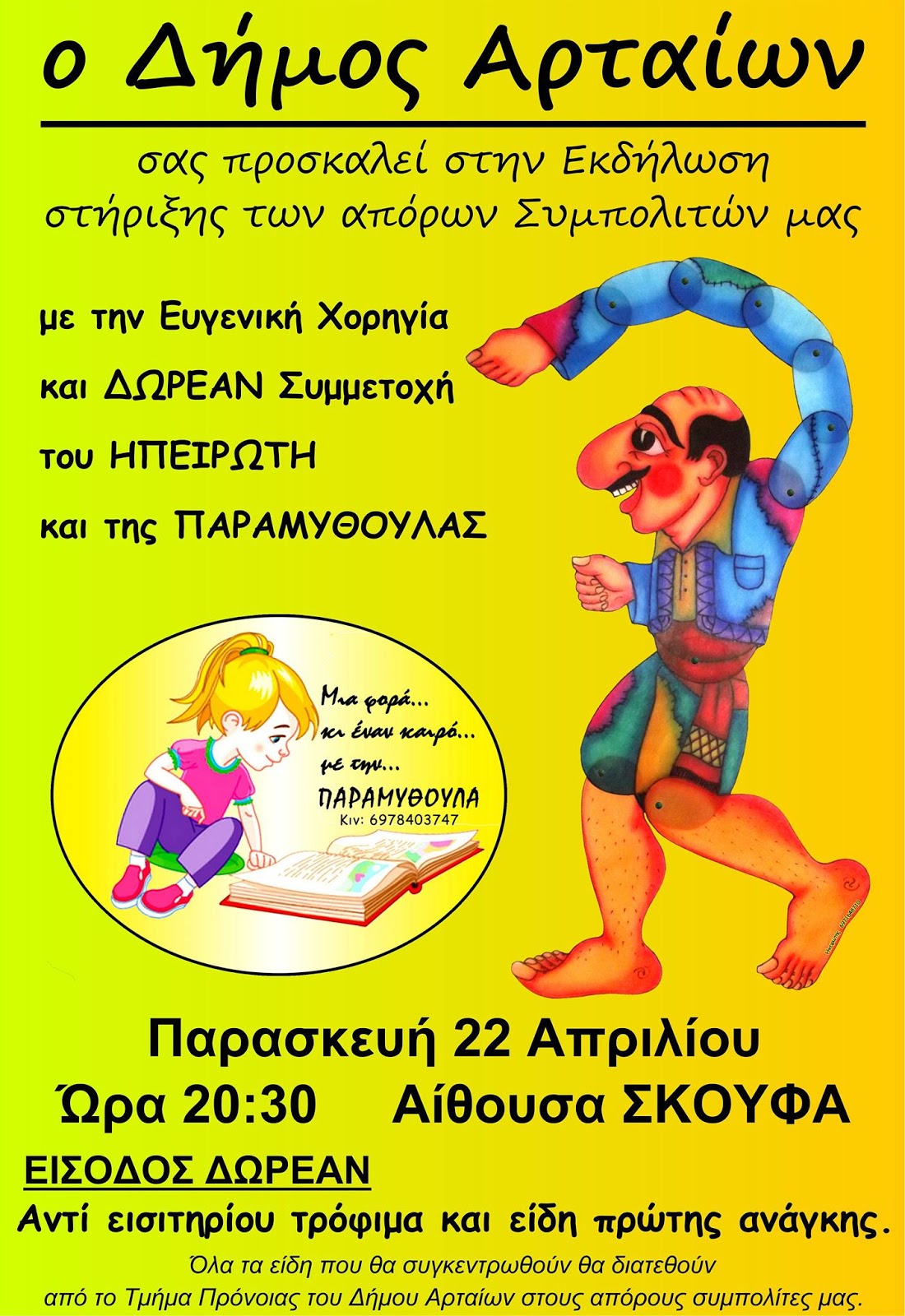 για τους απόρους συμπολίτες μας πραγματοποιεί ο Δήμος Αρταίων, την Παρασκευή 22