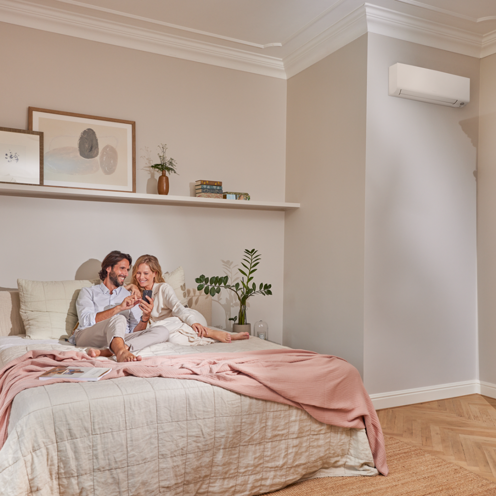 Στο νέο Perfera All Seasons μπορείς να αλλάζεις ή να προγραμματίζεις τις ρυθμίσεις τόσο από το παρεχόμενο χειριστήριο υπερύθρων όσο και από την εφαρμογή Onecta της Daikin που μπορείς να κατεβάσεις στο κινητό σου.