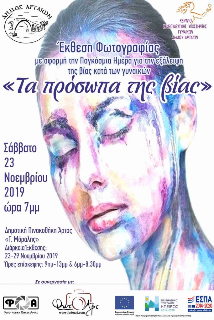 Έκθεση φωτογραφίας με θέμα “Τα πρόσωπα της βίας” από το Συμβουλευτικό Κέντρο Γυναικών του Δήμου Αρταίων