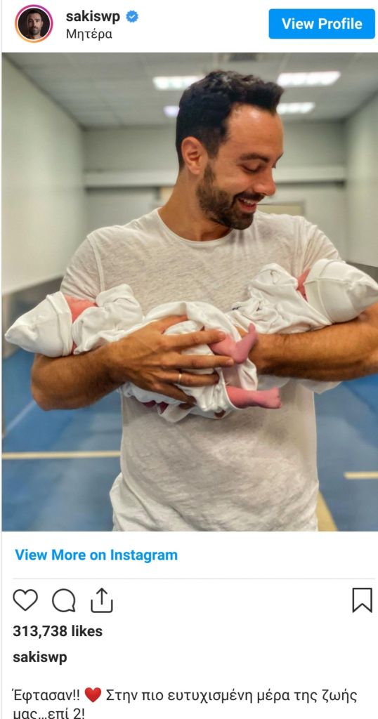 «Έφτασαν!! Στην πιο ευτυχισμένη μέρα της ζωής μας… επί 2», έγραψε ο Σάκης Τανιμανίδης στο Instagram.